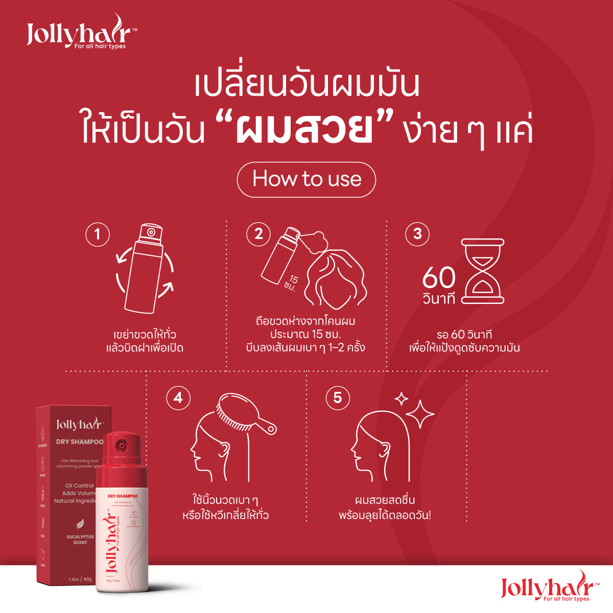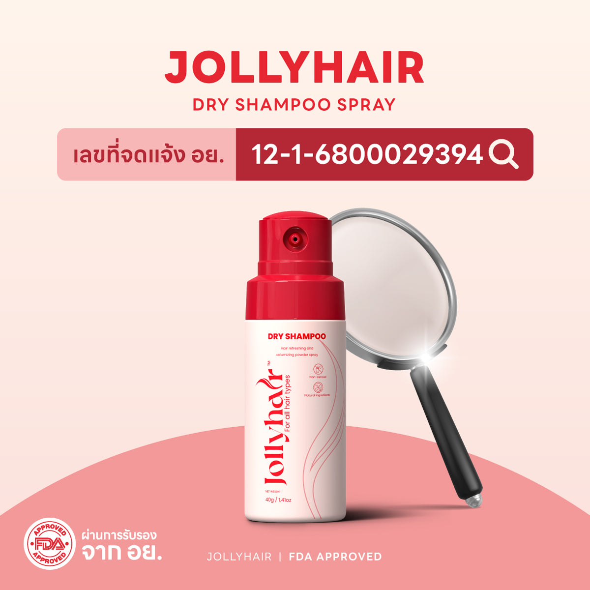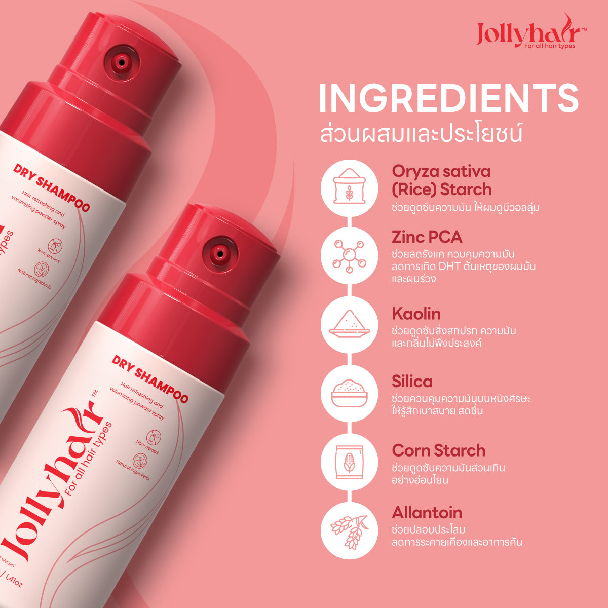 Jollyhair™ Puff Natural Dry Shampoo ดรายแชมพูขจัดความมัน สูตรผสมไบโอติน